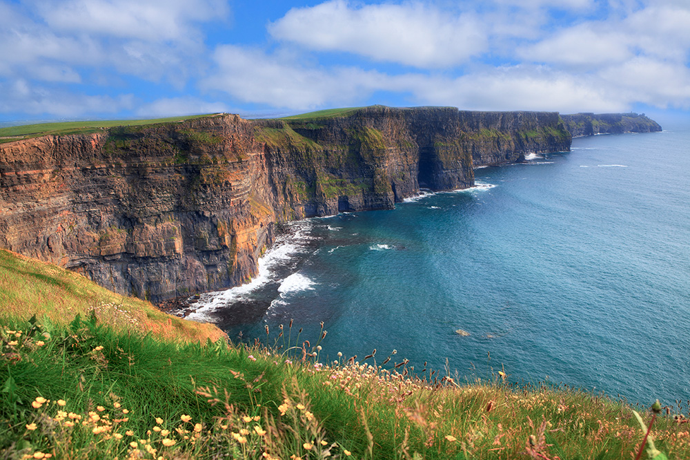 Départ en direction du comté du Kerry via le Burren. Présentation d’une saumonerie suivie d’une dégustation. Continuation pour les falaises de Moher. Il s'agit de l'un des sites touristiques les plus spectaculaires du pays. Les falaises bénéficient de l'une des plus belles vues d'Irlande. Route vers Ennis et Bunratty. Déjeuner en cours de route. Visite du parc folklorique de Bunratty. Le château est l'un des plus authentiques du Moyen-Âge. Dans le domaine se trouve Bunratty Folk Park où la vie du XIXe est recréée. Puis, route vers Limerick et Kerry. Installation à l'hôtel dans la région. Dîner avec la dégustation d’un Irish Coffee. Logement.