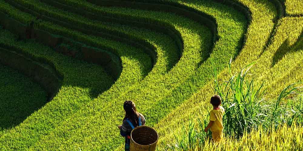 Route vers Mu Cang Chai, cette magnifique région est considérée comme le paradis des rizières en terrasses en passant par le célèbre col Khau Pha qui vous offre une vue impressionnante sur les villages. Partez pour une randonnée au milieu des champs de rizière de Tu Le, Lim Mong jusqu’au village typique de La Pan Tans. Découverte de la culture de Mong. Installation chez l’habitant en hébergement collectif. Dîner logement. (Randonnée de 1h30 env., 3 km, dénivelé +220 m)