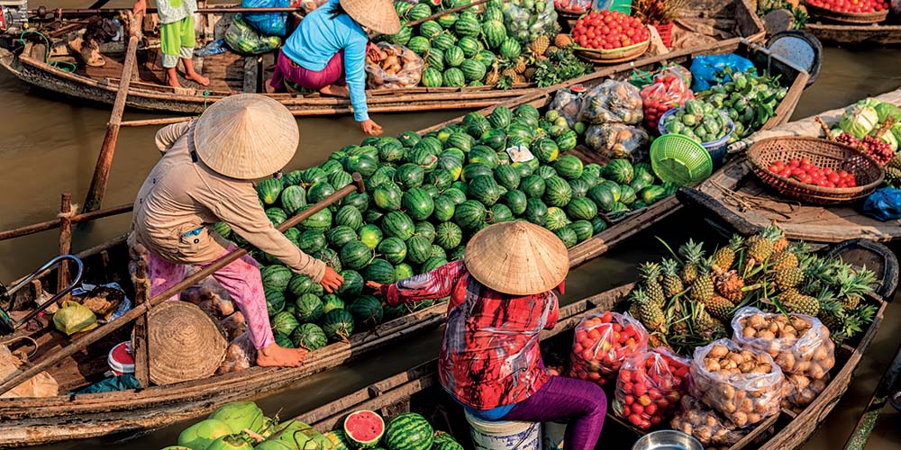 Rejoignez en petits bateaux l'île de Tan Phong. Découvrez la confection d'objets à partir des jacinthes d'eau. Poursuite de la journée en empruntant des petits véhicules à travers les cultures de champs fruitiers. Passage devant la cathédrale gothique de Cai Be et déjeuner à bord. Arrivée à Sa Dec, où Marguerite Duras a passé une partie de son enfance. Tour de ville où subsistent quelques maisons coloniales. Visite de la « maison du Chinois », décrite dans L’Amant, transformée en petit musée. Découverte du marché local coloré. Dîner à bord.