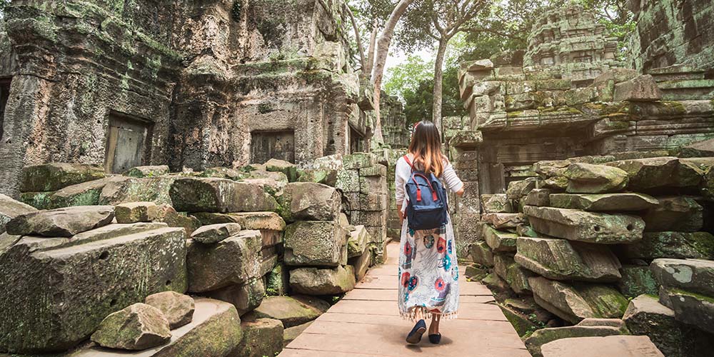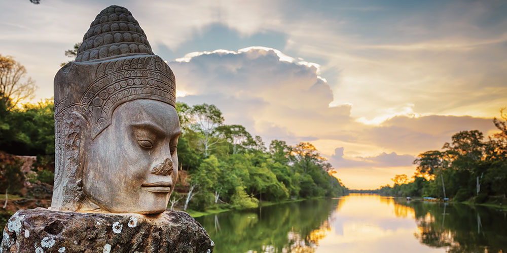 Le matin, départ à la découverte d’Angkor et de l’une des anciennes capitales de l’Empire khmer, Angkor Thom. Visite du remarquable Bayon, édifié par le grand roi bâtisseur Jayavarman VII. L’après-midi, visite du spectaculaire Ta Prohm. Ce temple immergé dans la végétation tropicale a été volontairement laissé dans un état proche de celui de sa redécouverte au début du XXe. Dîner au restaurant. Logement.