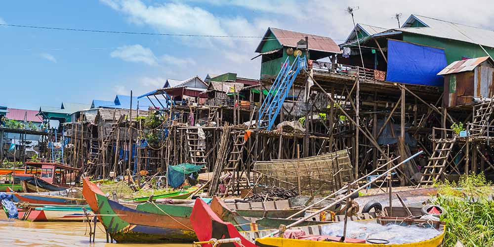 Débarquement et transfert pour Siem Reap. Arrêt au pont de Kampong Kdei, construit sous le règne de Jayavarman VII. Arrivée à Siem Reap et déjeuner. Installation à l’hôtel et première découverte de Siem Reap avec la visite d’un village situé sur les bords du lac de Tonlé Sap. Dîner au restaurant. Logement.