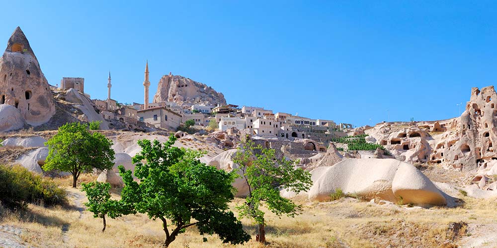 Partez à la découverte de la Cappadoce, une magnifique contrée aux paysages lunaires. Laissez-vous envoûter par la magie de ces fantaisies géologiques : « les cheminées de fées » sculptées par le vent et les intempéries. Admirez plusieurs églises rupestres décorées de fresques et creusées dans la roche volcanique au cours du Moyen Âge dans le musée en plein air Göreme, classé au Patrimoine mondial de l’Unesco. Déjeuner. Continuation par la traversée de la vallée d’Avcilar et de celle de Kiliçlar, avec leurs anciennes habitations troglodytiques et leurs cheminées de fées. Baladez-vous dans le charmant village d’Uçhisar, dont la citadelle couronne un piton rocheux offrant un superbe panorama sur la vallée des Pigeonniers. Profitez d’un coucher de soleil sur une terrasse au milieu des vignes face au grandiose paysage de la vallée. Dîner logement.