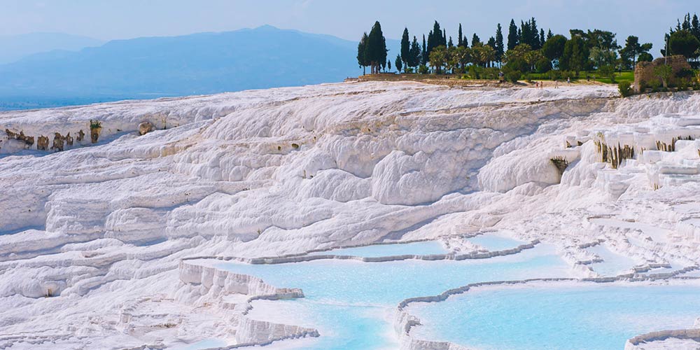 Départ pour la découverte de Pamukkale (le « château de coton » en turc), un paysage irréel fait de forêts minérales, de cascades pétrifiées et d'une succession de vasques en gradins, prenant naissance au sommet d’une falaise haute de près de 200 m. Un site unique au monde, classé au Patrimoine mondial de l’Unesco qui abrite les ruines d'établissements thermaux, de temples et d'autres monuments grecs. Découvrez Hiérapolis, une ville bâtie sur ce site naturel extraordinaire. C’est un exemple exceptionnel d’ensemble thermal gréco-romain, où l’on peu voir les vestiges du martyrium de saint Philippe, témoin du rayonnement de la communauté chrétienne dès le premier siècle. Déjeuner en cours de route. Installation à l’hôtel où vous pourrez profiter pleinement pour vous détendre dans les piscines, les bains d’eau thermale et le spa. Dîner logement.