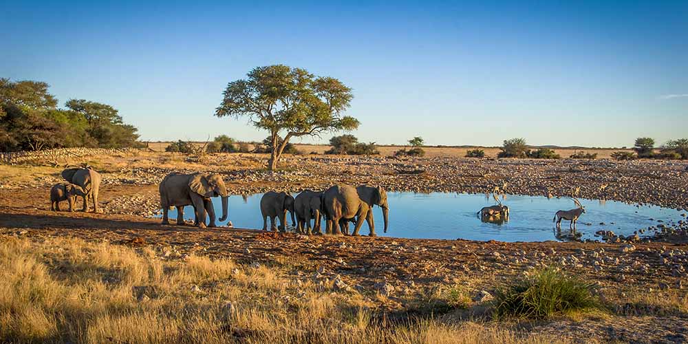 Cette journée vous entraîne au cœur du Parc National d’Etosha. Vous traverserez le parc d'Ouest en Est (130 km) en autocar. Vous admirez de près des éléphants, des gnous et d’autres animaux sauvages. Vous vivrez un safari inoubliable ! Après cette journée intense, installation au lodge. Dîner logement.