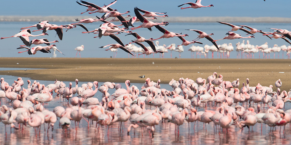 Vous quitterez le train, muni d'un bagage léger et rejoindrez Walsis Bay, littéralement la "Baie des Baleines" en autocar. Si la chance vous accompagne, vous contemplerez les flamants roses et les pélicans. Au bout de cinq heures de route, vous atteindrez le Parc National de Namib Naukluft. Enfin, vous passerez le pass Gaub, un col montagneux à 750 m d'altitude, le long des montagnes Naukluft aux formations rocheuses intrigantes et le Canyon Kuiseb. Vous passerez la nuit dans un lodge. Dîner logement.