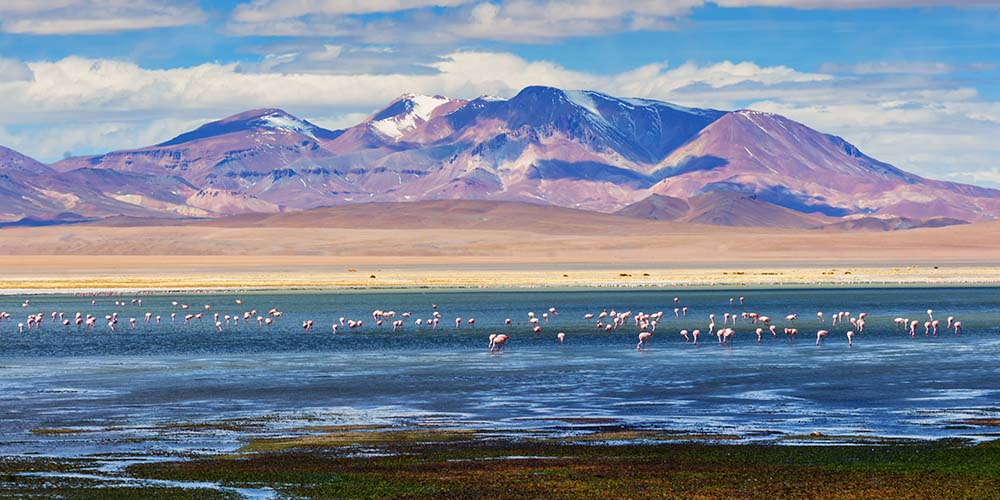 Excursion dans l’Altiplano et le célèbre désert d’Atacama: découverte du Salar peuplé de flamants roses puis montée vers les lagunes Miscanti et Meñiques, à plus de 4 000 m d’altitude. Déjeuner sous forme de panier repas à Socaire. Arrêt au tropique du Capricorne. Dîner et logement à l’hôtel.