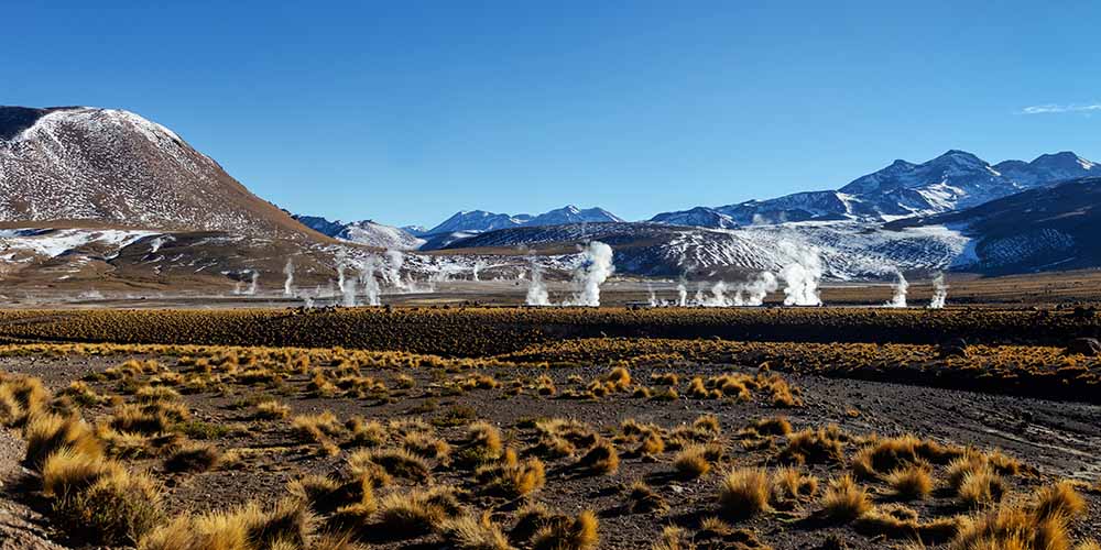 Départ à l’aube pour admirer l’un des spectacles naturels les plus impressionnants : les geysers du Tatio au lever du soleil, au cœur de la cordillère des Andes. Petit-déjeuner sur place. Retour par des paysages andins spectaculaires. Déjeuner au restaurant puis vol vers Santiago. Installation, dîner et logement à l’hôtel.