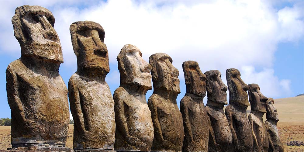 Départ matinal vers le site énigmatique d’Ahu Akivi, seul endroit de l’île où les Moai font face à l’océan. Continuation vers le volcan Puna Pau, ancienne carrière des « Pukao » coiffant les Moai. Déjeuner sous forme de panier repas. Poursuite vers le village cérémoniel d’Orongo, avec ses 54 maisons aux fines dalles de pierre, puis observation du gigantesque volcan Rano Kau et sa lagune. Retour à l’hôtel, dîner et logement.