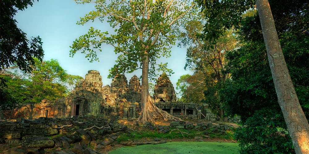 Journée consacrée au site d’Angkor, patrimoine architectural unique au monde. On accède au temple Angkor Thom par cinq portes monumentales avec en son centre le Bayon, célèbre pour ses tours aux 172 visages d’Avalokitesvara. Visite de Baksei Chankrong, de la terrasse des éléphants et la terrasse du roi lépreux. Déjeuner. Visitez le temple de Ta Phrom enlacé par les racines des arbres fromagers, des temples de Kravan, Srah Srang, Ta Keo et du superbe temple de de Banttey Kdei jusqu’au coucher du soleil. Retour à Siem Reap. Dîner logement.
