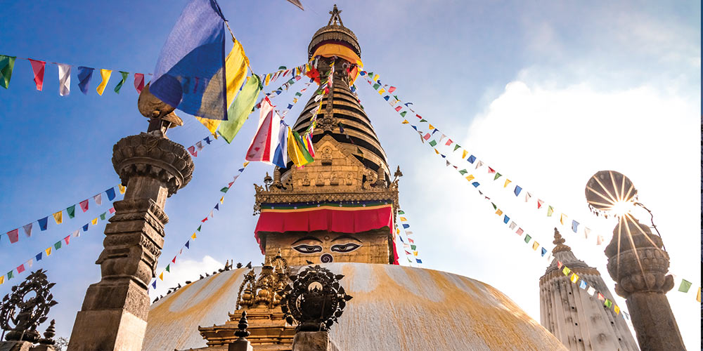 Découvrez le temple de Swayambhunath, l’un des stupas bouddhistes les plus connus au monde. Sa situation élevée offre un panorama à 360° sur la vallée de Katmandou. Poursuivez au cœur des ruelles labyrinthiques où se trouve la place du Durbar aux très beaux édifices religieux. Le charme de la vieille ville se mêle à l’architecture traditionnelle. La place est classée patrimoine mondiale de l’UNESCO. Déjeuner. Continuez vers le quartier agréable de Thamel et Ason, un bazar local connu pour l’achat des épices utilisées dans la cuisine népalaise. Dîner logement.