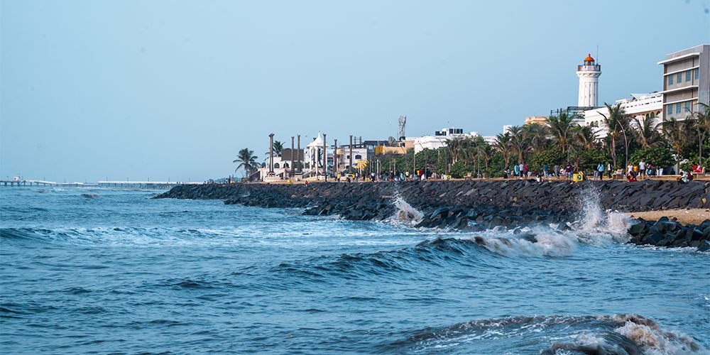 Route vers Pondichéry, ancienne colonie française sur la côte est. Découvrez le temple de Darasuram à l’architecture dravidienne. Déjeuner de spécialités du sud. Arrivée à Pondichéry, la « ville blanche » aux larges rues propres et élégantes et maisons coloniales. Installation à l'hôtel. Dîner logement.