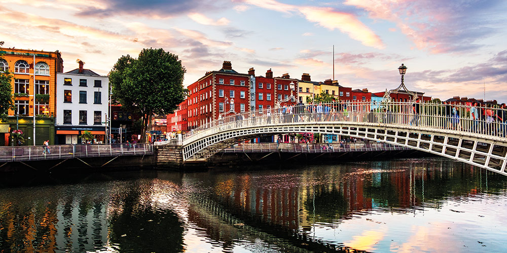 Rendez-vous à l'aéroport de Lyon ou Genève. Assistance aux formalités d’enregistrement et embarquement sur vol régulier à destination de Dublin. Accueil et tour panoramique de la ville aux multiples facettes : le quartier georgien, le Parlement, la cathédrale St Patrick…Transfert à votre hôtel dans la région de Dublin. Dîner logement.