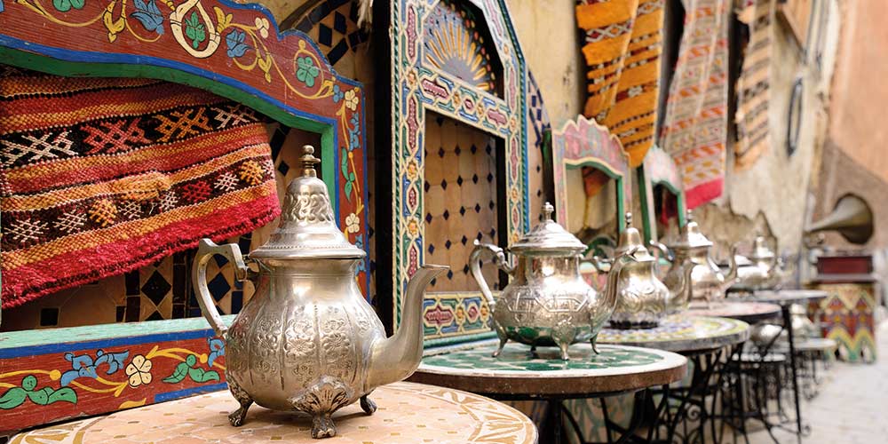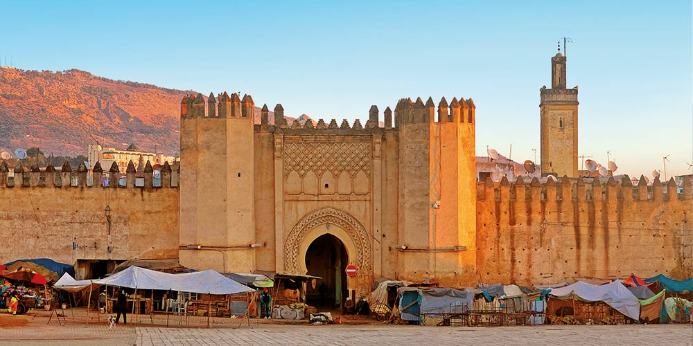 Journée consacrée à Fès, fondée par Moulay Idriss II vers l’an 800. Elle est la plus ancienne des villes impériales. Au même titre que Marrakech et Meknès, Fès est une ancienne capitale du Maroc. La ville est en fait constituée de la juxtaposition de trois villes : Fès-el-Bali, la médina ou centre historique ; Fès-el-Jadid, la ville neuve fondée par la dynastie des mérinides en 1276 et la ville nouvelle, proprement dite, construite sous le protectorat français. Découvrez Bab Boujeloud, porte monumentale remarquable par la richesse de sa décoration intérieure, la place et la fontaine Nejjarine et le quartier des andalous. Promenade dans les souks : le souk Attarine aux épices odorantes et multicolores, le souk des dinandiers qui martèlent plateaux et chaudrons, le souk des teinturiers. Le quartier des tanneurs à l’odeur tenace où les grandes cuves colorées offrent un spectacle impressionnant et une belle vue sur les remparts. Puis visite de la zaouïa de Moulay Idriss qui abrite le tombeau d’Idriss II située à côté de la plus ancienne université au monde : El Karaouiyne. L’entrée est en bois sculpté et peint (entrée exclusive aux étudiants). Après la visite de la ville, retour à Meknès. Dîner logement.
