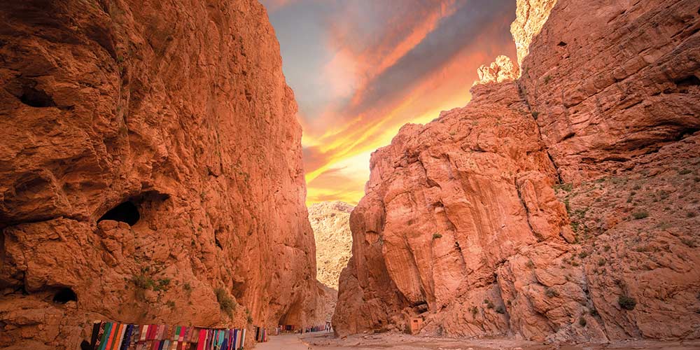 Aujourd’hui vous quittez les hautes dunes de Merzouga en direction des gorges de Toudra. Vous traverserez la vaste oasis de Tafilalet qui regroupe les deux palmeraies de Ziz et Ghriss. Passage par les villages oasiens de Jorf, Touroug et Tinjdad avant d’arriver à la ville de Tinghir, point de départ pour découvrir les spectaculaires gorges de Toudra et leurs grandioses falaises qui peuvent atteindre 300m de hauteur. Continuation vers Boumalen Dades pour la visite des gorges. Marche de 2h30 dans les jardins de Toudra, entre la ville de Tinghir et les gorges. Installation à l’hôtel. Dîner logement.