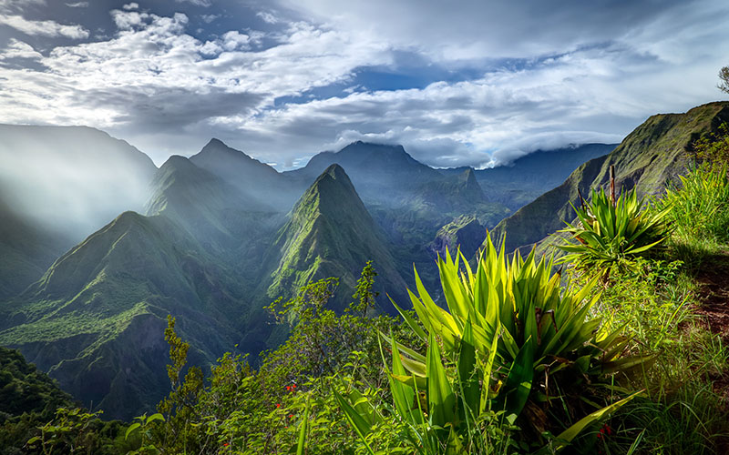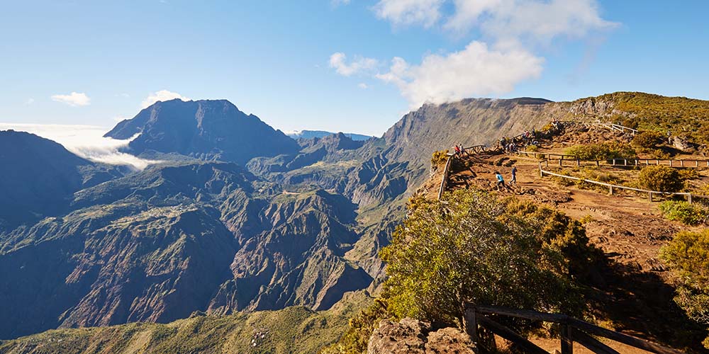 Départ matinal par Saint-Gilles-les-Hauts à travers champs de canne et forêts de tamarins. Montée jusqu’au Piton Maïdo, à plus de 2 000 m d’altitude, avec vue spectaculaire sur le cirque isolé de Mafate, accessible uniquement à pied ou en hélicoptère. Randonnée sur le sentier historique « Maïdo – La Glacière », jalonné de panoramas impressionnants sur les îlets du cirque, entre remparts, pitons et nature sauvage. Pique-nique en cours d’excursion. L’après-midi, arrêt à Petite France pour visiter un alambic artisanal et découvrir la distillation d’huiles essentielles de géranium. Fin de journée à Saint-Paul avec un arrêt au cimetière marin, où reposent Olivier le Vasseur et le poète Leconte de Lisle. Dîner et nuit. (Niveau : modéré - distance : 11 km - durée : env.4h30 - dénivelé : +470m/-470m).