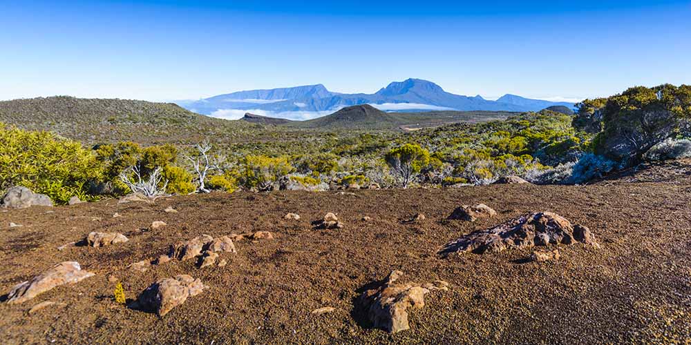 Pique-nique au sommet. L’après-midi, traversée à pied de la Plaine des Sables, surnommée « site lunaire » ou « martien », tant ses paysages sont irréels. Un décor minéral unique à La Réunion.