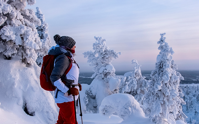 Essayez un mode de locomotion traditionnel dans les régions arctiques ! Chaussez vos raquettes et dirigez-vous vers la nature enneigée. Votre guide vous parlera de la vie en Laponie et de ses habitants. Pendant cette balade, vous savourerez une boisson bien méritée. Retour à l’hôtel pour le déjeuner. Après-midi libre. Dîner logement.